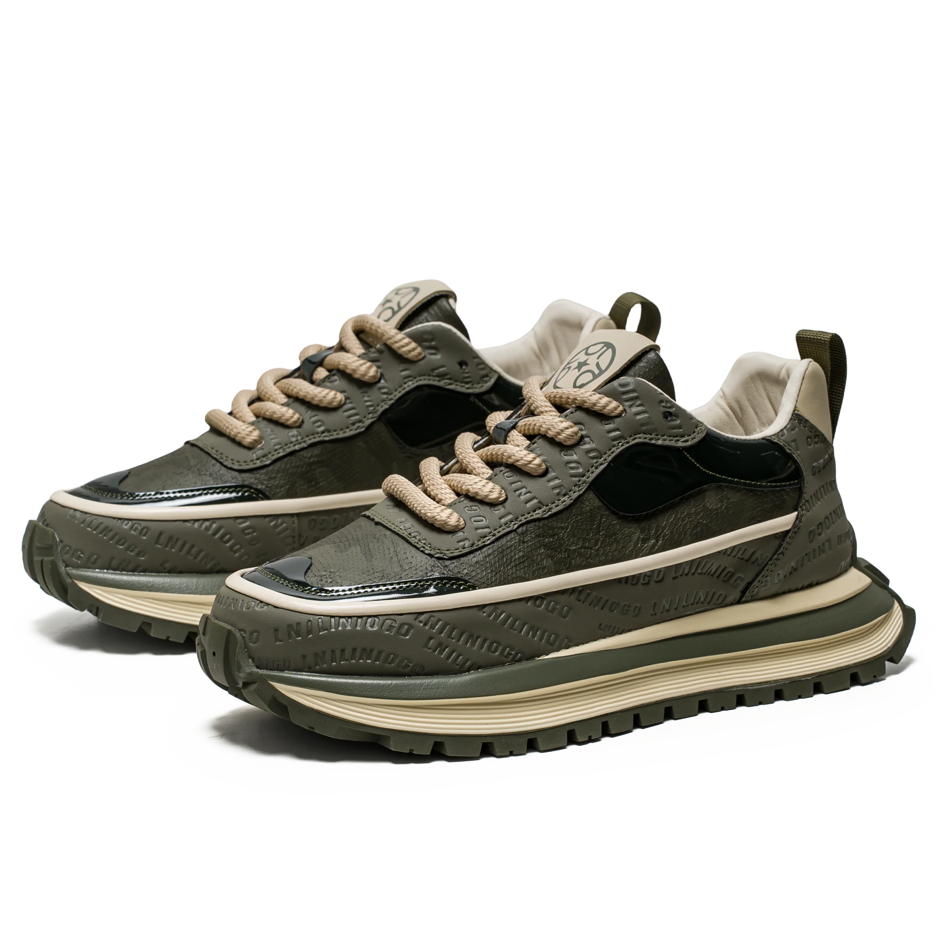 These sneakers don’t just walk – they command attention with their bold platform sole and dynamic embossed texture. The rugged yet refined mix of smooth and textured panels creates a striking contrast, while the oversized rope laces add an unexpectedly cool touch. Designed for the modern adventurer, they balance style and function with a sole built for urban exploration and outdoor treks alike.